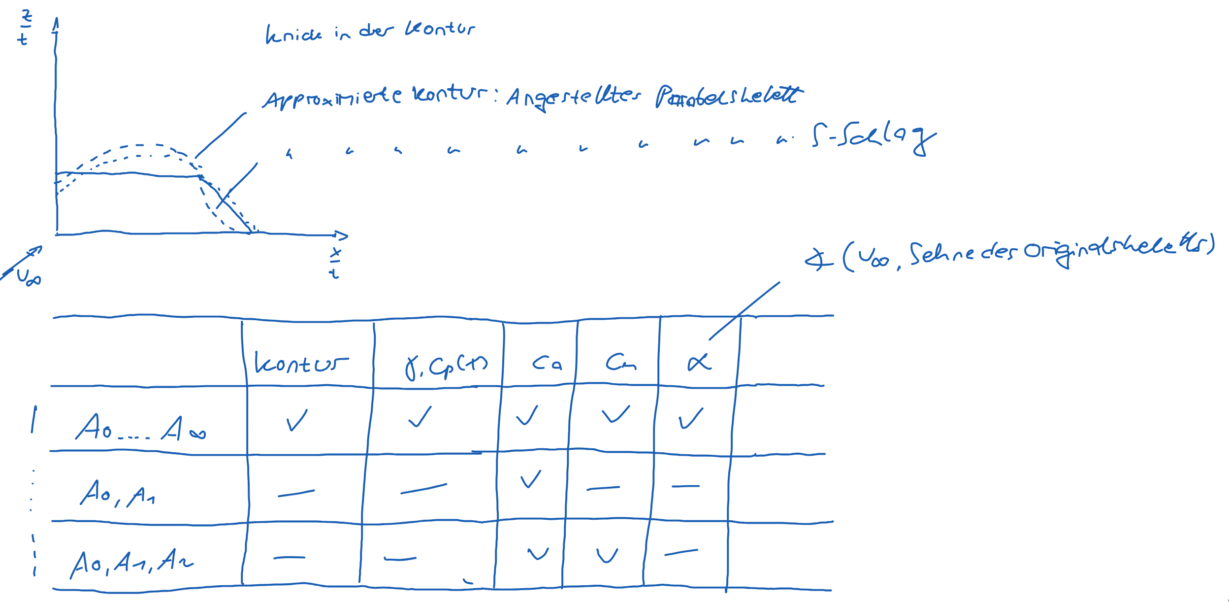 | Zunehmende Profildicke | $\uparrow$ | $c_a = const, c_w \uparrow$ | $\uparrow$ |