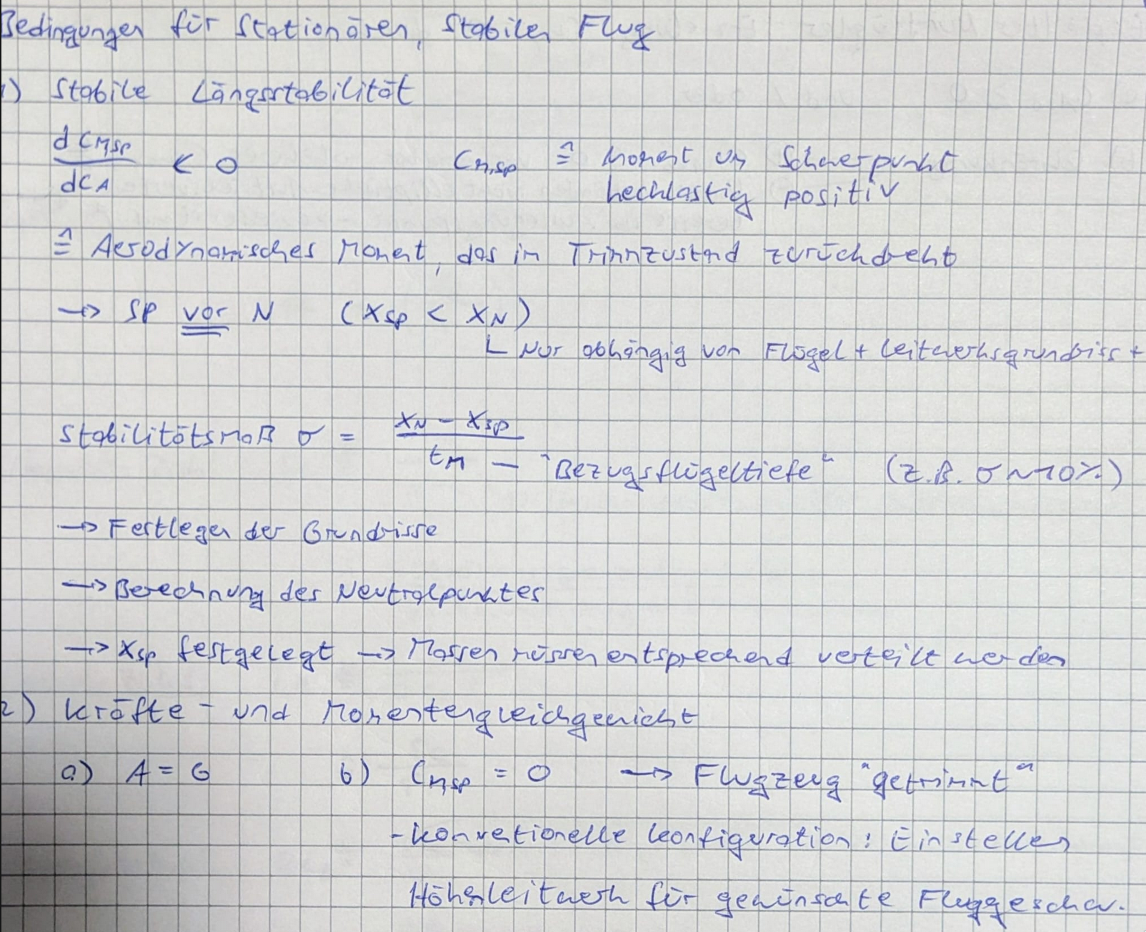 Neutralpunkt ist der Punkt, in dem das Moment bei variablem Auftriebsbeiwert konstant bleibt.