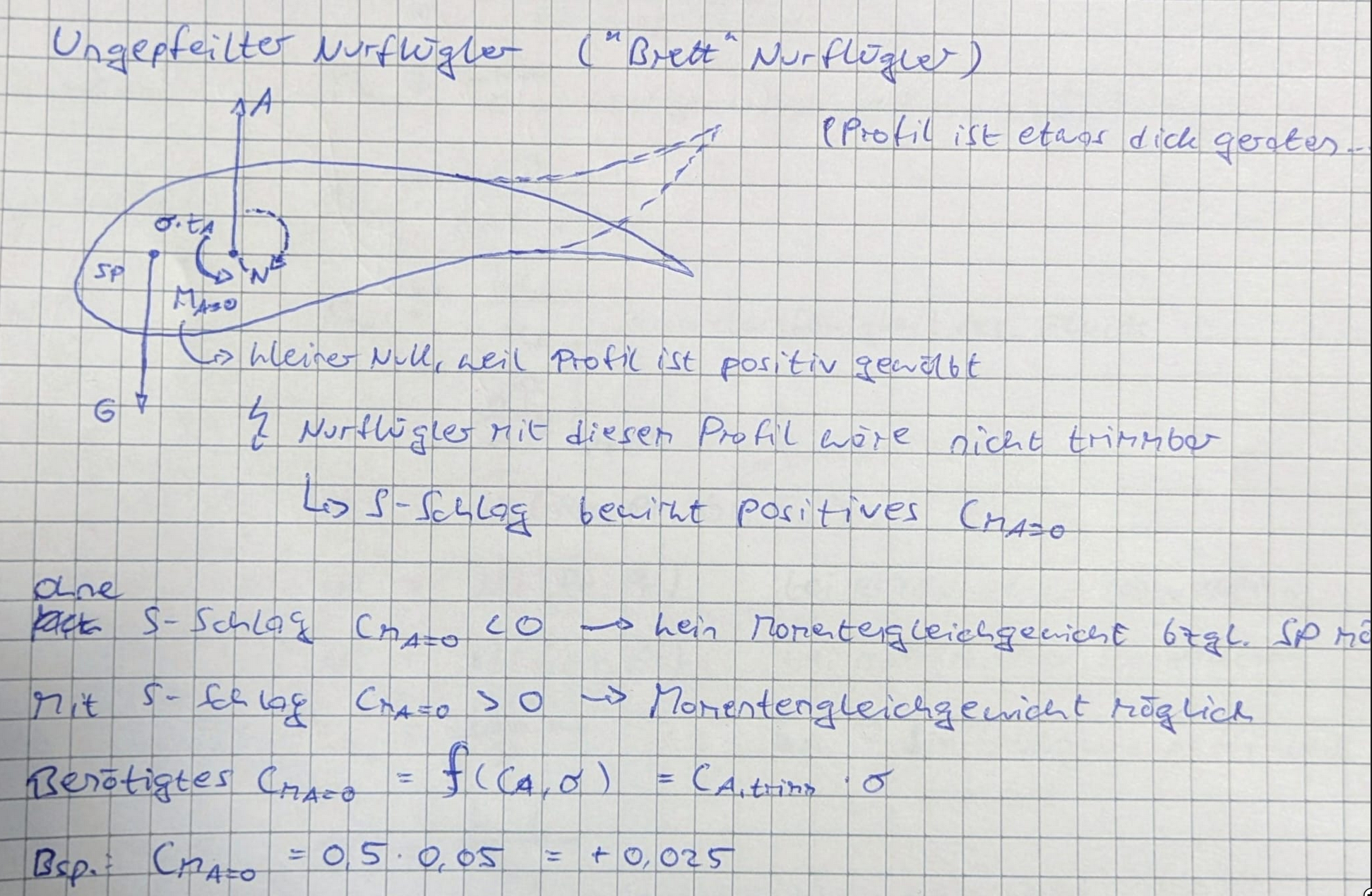 - bei symmetrischen Profilen ist $A_1 = A_2 = 0$. symmetrische Profile sind daher stets druckpunktfest