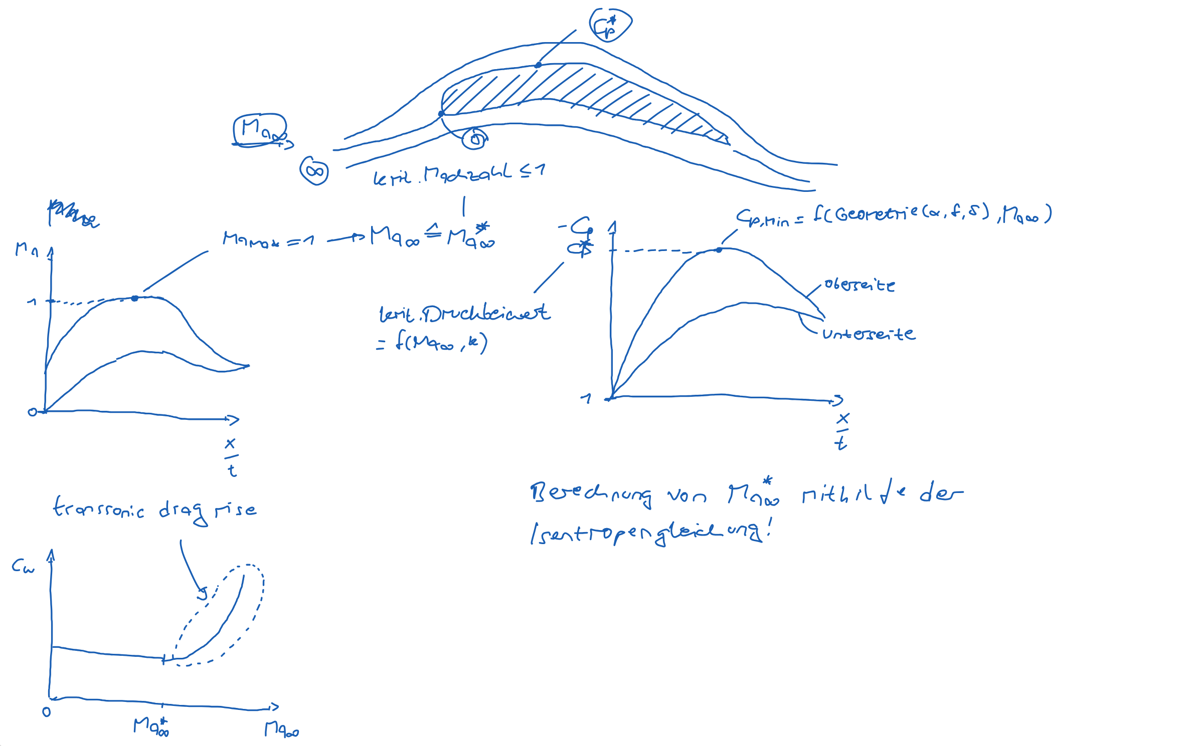 - Bestimmung von $c_{p\min}(Ma_\infty)$ für die kompressible Profilumströmung mit beliebig genauer Berechnungsmethode oder experimentell