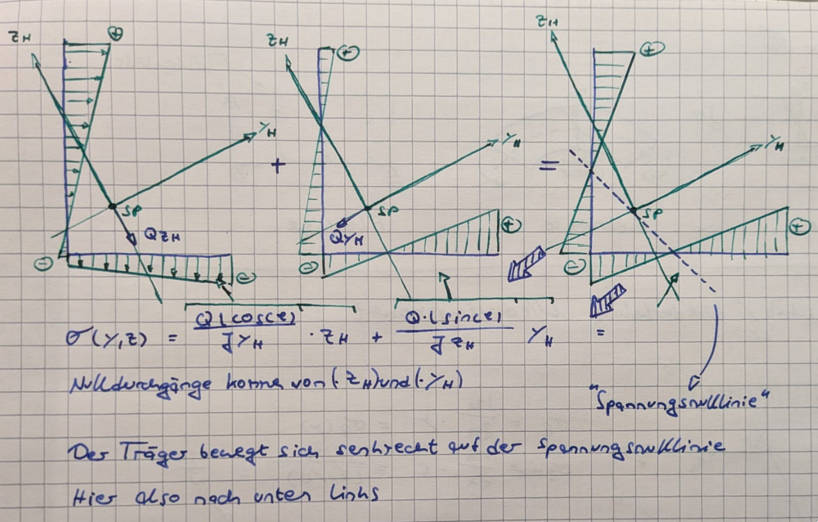 - Es sntstehen zusätzliche sekundäre Spannungen $\sigma_{tr}$ senkrecht zur Biegespannung