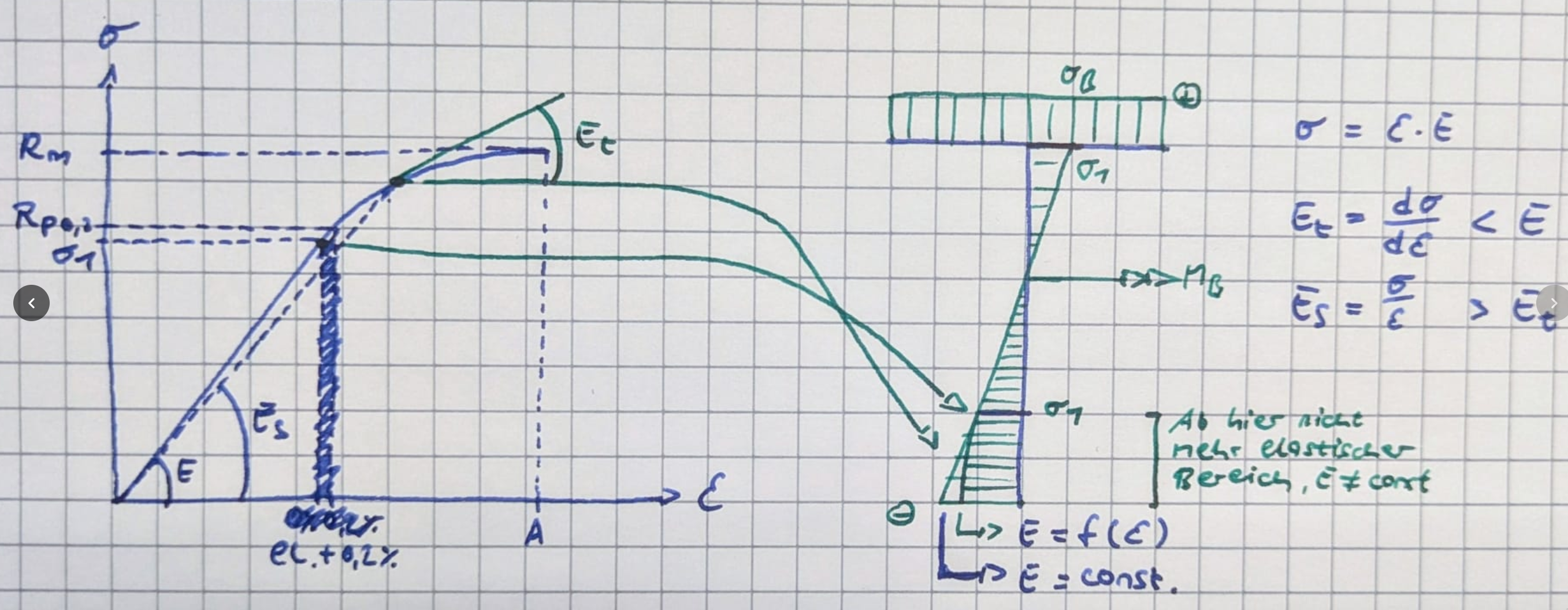 Zwischen den Kraftflüssen und Schnittmomenten einerseits und den Dehnungen und Krümmungen in der Bezugsebene andererseits, besteht das Elastizitätsgesetz 3-85 für den Mehrschichtverbund