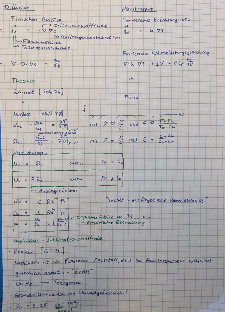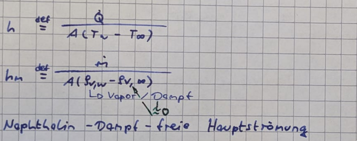 - Auswertung nach Massentransferkoeffizient $h_m$, Umrechnung in Sherwood-Zahl $Sh$
