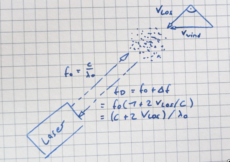 - Returning (backscattered) light is frequency shifted because of the line-of-sight speed of the aerosols